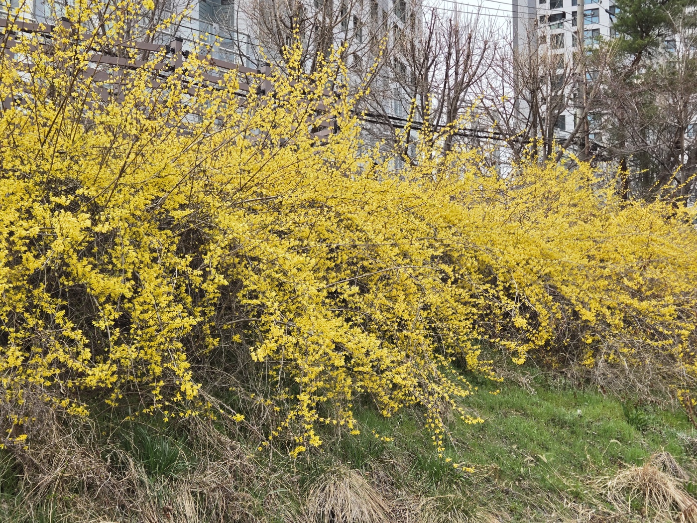오늘은 개나리가 활짝 피어 있었어요.