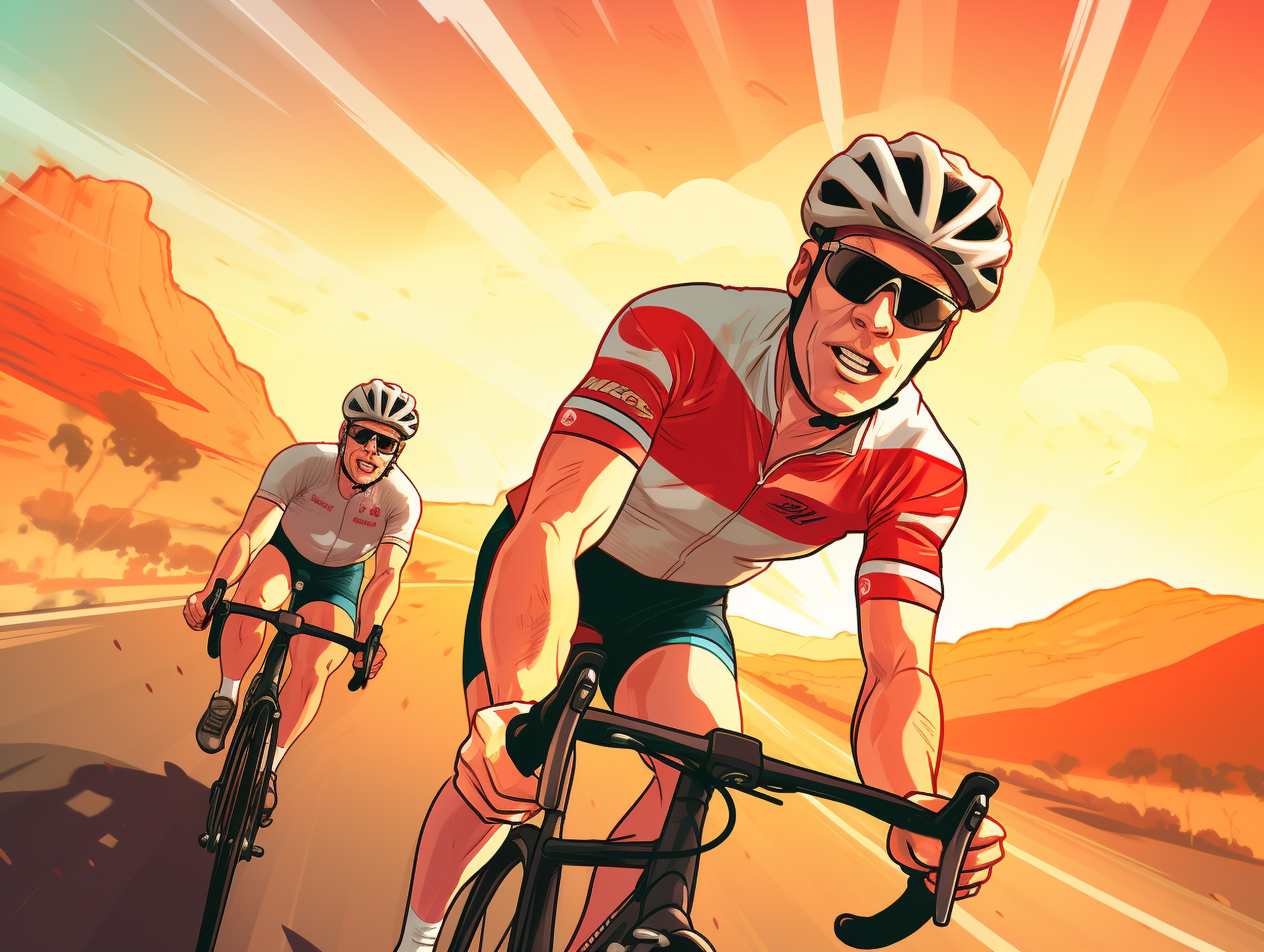 당시 그는 더위와 탈수 속에서도 계속 페달을 밟았고,